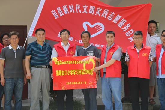 队员们与台口村两委班子成员作了简单的对接后迅疾行动起来。他们首先赶赴该村小学捐赠了2000元的学习用品,用以帮助家庭贫困的孩子解决学习难题。志愿服务小队副队长卢定群深入课堂,为孩子们上了一节生动的安全教育课,祝愿孩子们安全、健康、快乐地成长。