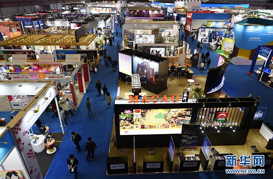参观者在上海举行的首届中国国际进口博览会服务贸易展区参观(2018年11月10日摄)。新华社记者韩瑜庆摄