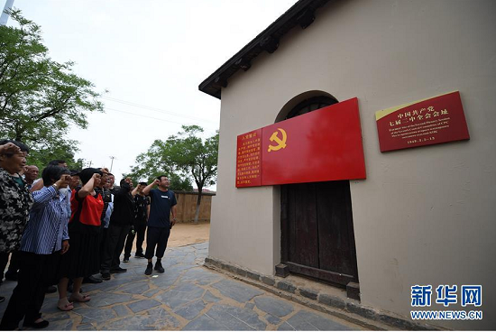 在河北西柏坡中国共产党七届二中全会会址,党员重温入党誓词(6月20日摄)。新华社记者朱旭东摄