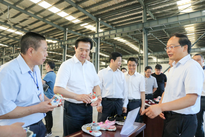 在湖北雄耀体育用品有限公司,黄楚平走进生产车间,了解企业生产销售情况。黄楚平要求企业要注重市场开发,保证产品质量和销量,带动更多的群众就业脱贫增收。
