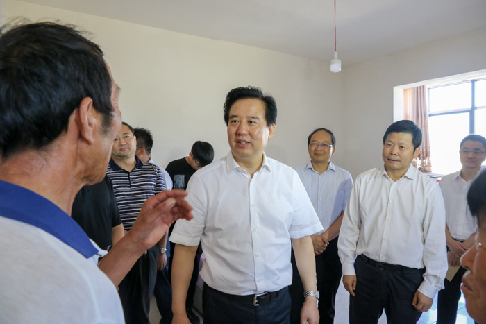 在军店镇中村易地扶贫搬迁小区,黄楚平走进贫困户杨晴辉、刘志兴家中,了解他们的家庭情况,询问家庭成员的身体情况和家庭收入来源,勉励他们要积极面对生活,借助党的好政策,努力改善生活条件,通过精准帮扶把生活越过越好。