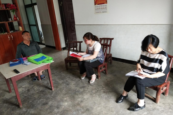 沙坪村工作队正在详细询问贫困户近期生活状况