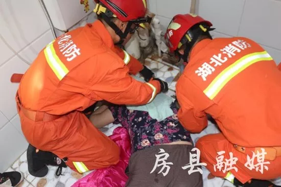 消防人员到达现场后,看到老奶奶全身趴在卫生间的蹲便池处,右手被死死卡在便池内,由于被卡近1个小时,老人手臂出现肿胀,表情十分痛苦,汗珠直往下滴。