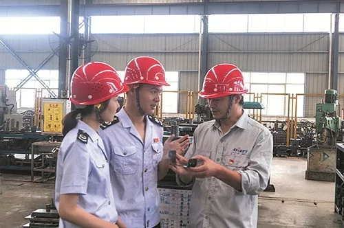 税务干部在企业了解生产经营情况