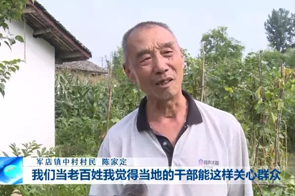 军店镇中村村民陈家定:“我作为一个老百姓来说,有什么问题困难的时候,需要他的时候他总在面前,我们当老百姓我觉得当地的干部能这样关心群众,啊那我的角度说我很满足。”