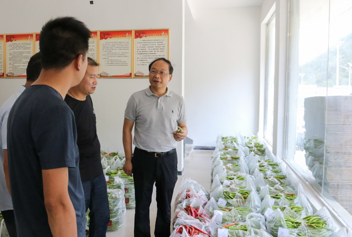 蔡贤忠在姚坪乡肖家沟村察看辣椒种植收购情况