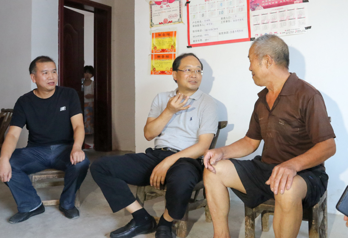 “全村最贫户怎么脱贫?有什么增收渠道?分散供养五保户生活如何保障到位?”在与村干部、驻村工作队员交流时,每个村最贫20户和“五类重点人员”的生活保障和生产发展是蔡贤忠最为关心的问题。蔡贤忠指出,要通过“进村住户、户户走到”,特别关注“所有扶贫政策都落实到位仍然达不到脱贫标准的贫困户”脱贫问题,防止“算账脱贫”、“数字脱贫”、“虚假脱贫”、“被脱贫”。