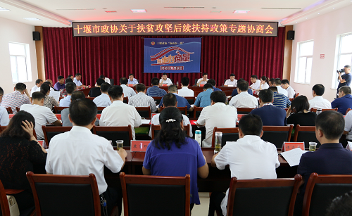 会议以现场观摩和“民意恳谈会”的方式进行。与会人员现场观摩了我县红塔镇朱湾村胜利农机专业合作社、李湾村誉贝洁具扶贫车间和村卫生室、党湾村易迁小区和助残托管照护站,“民意恳谈会”重点围绕十堰脱贫攻坚后续扶持中,对略高于建档立卡贫困户群体政策支持问题进行专题协商。