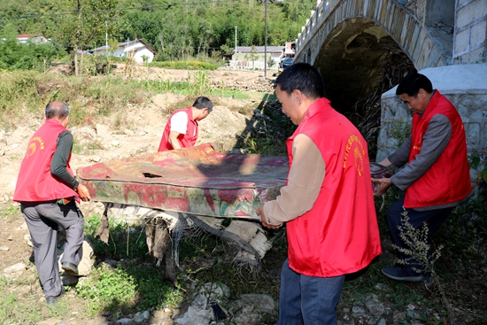 当天共有120余名志愿者参加活动,有党员干部、普通群众,有白发老人、稚嫩儿童、留守妇女,志愿者们围绕五谷集镇、黄家营片区开展活动,以实际行动向祖国母亲献礼。