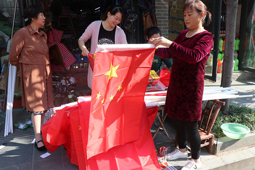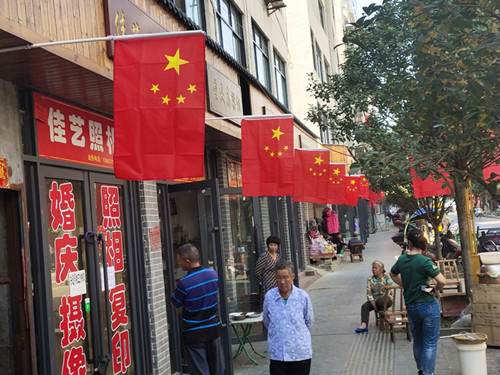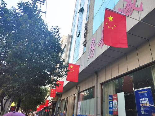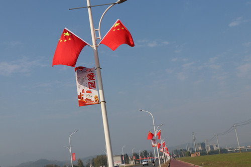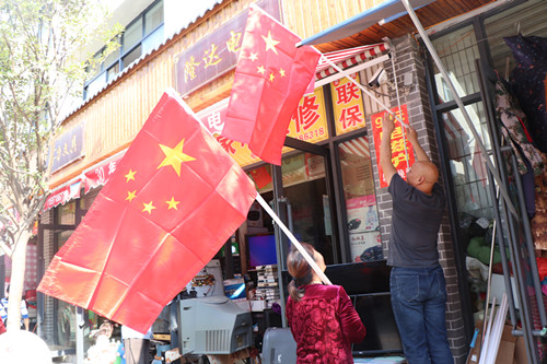 临近国庆,城关镇的街头巷尾,随处可见机关、学校、社区、临街门店、商业街区、各大广场、城市主要道路以及公交车、出租车,或自发或有组织悬挂国旗,鲜艳的五星红旗随风招展,不仅扮靓了城市街头,营造出浓烈的国庆气氛,更让市民感受到了浓厚的节日氛围。