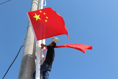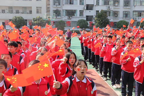 “我和我的祖国,一刻也不能分割...... ”伴随着悠扬悦耳的配乐,在城关镇四中操场上音乐老师的带领下,千余师生共同深情演唱《我和我的祖国》,全体教师挥舞着手中的五星红旗,嘹亮的歌声响彻整个校园;在城关镇政府旁沿街商户开门的第一件事就是在门前插起国旗,不一会,鲜艳的五星红旗就在街道两旁延展开来,迎风招展;在城区各条主干道上,一面面国旗向过往车辆行“迎宾礼”。 火红的城关为即将到来的新中国成立70周年大庆,营造出热烈而庄重的节日气氛,居民走在红旗招展的街道上个个喜笑颜开,充满了对祖国的自豪感。截止目前,全镇悬挂五星红旗2万多面。与此同时,该镇通过环境卫生大扫除活动,上下齐行动,共建共治共享净家园的良好氛围,解决了群众最关心、最直接、最现实的环境问题,营造了干净、整洁、优美的城市环境,提升了人民群众的获得感、幸福感,以新的城市面貌迎接中华人民共和国成立70周年。