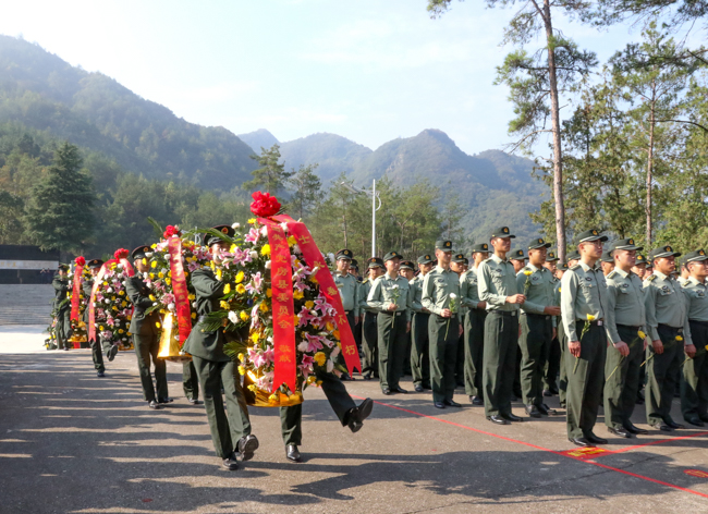 礼兵向革命先烈敬献花篮