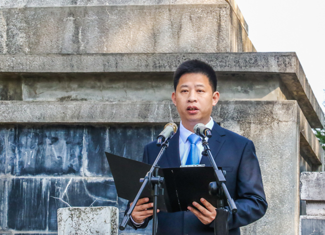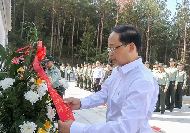 上午9时整,蔡贤忠、纪道清、肖大有、高明哲、徐锦凤、祁国鹏、陈刚、高勇、阮登香、付必久、胡志刚、董诠闻等县四大家领导、驻房部队官兵及各界代表来到革命烈士纪念碑前,静静肃立。仪式由县委副书记、县长纪道清主持。