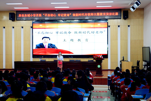 为庆祝新中国成立70周年,深入开展“不忘初心、牢记使命”主题教育,营造浓厚的学习氛围,展现广大教师干部紧跟时代、砥砺前行、担当责任、奋发有为的精神风貌。9月26日下午,房县东城小学在该校阶梯教室举办了喜迎新中国成立70周年暨“不忘初心,牢记使命,做新时代好老师”主题教育演讲比赛。