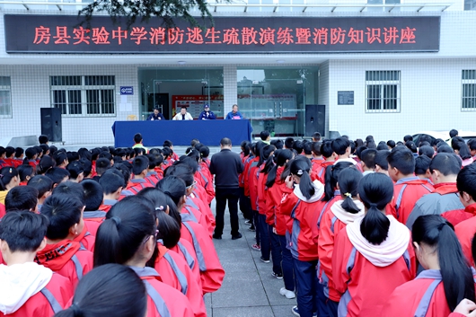 今日房县网讯:为进一步提高广大师生的消防安全意识和逃生自救能力,积极创建安全、稳定、和谐的校园环境,10月17日,房县消防救援大队深入辖区实验中学开展消防安全培训暨应急疏散演练,全校三个年级共计2300名学生参与此次培训。