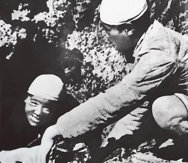 图为和战友一起烧炭的张思德(左),这是他生前留下的唯一一张照片。新华社发