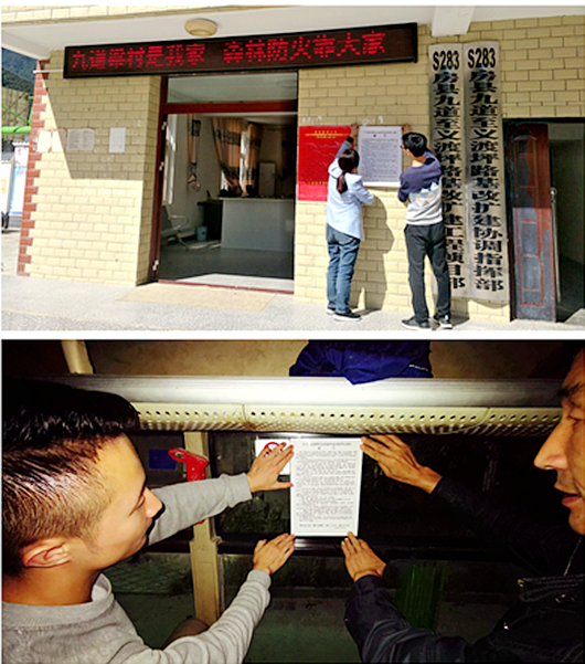期间,专班携带市中级人民法院、市人民检察院、市公安局及市司法局联合下发的《关于依法处理信访活动中违法犯罪行为的通告》“三步走”全面拓展法治效应:第一步,机关单位带头宣,集镇所在地的乡直单位第一时间完成自主性张贴,有LED屏的单位优先滚动播放《通告》内容,带动宣传氛围;第二步,密集场所重点宣,以村为小组结合山区分散居住特点,在各村人员密集场所,如学校、卫生室、扶贫小区等地进行有效张贴,全力做到宣传流量最大化;第三步,流动车辆灵活宣,针对九道农村客运现状,专班主动联系两辆班车司机,将过塑缩印后的A4版《通告》张贴至车内醒目位置,顺势增设重点人员警民协管机制,确保第一时间掌握重点人员出行动向。此外在张贴的过程中,专班还向过往群众讲解了《通告》中信访人在信访活动中的十五种违法犯罪行为和违法犯罪行为的处罚依据和处罚种类,告诫群众遇到问题要利用法律渠道去解决,通过合理合法的途径来维护自己的合法权益,不要非法上访。