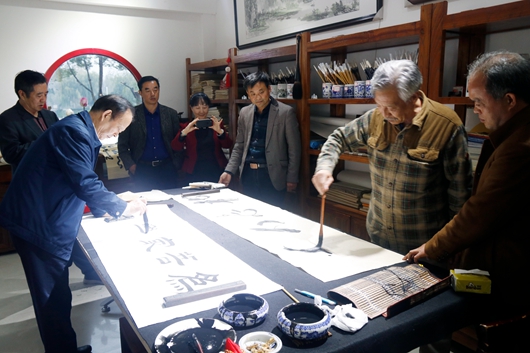 今日房县网讯 通讯员 张立林 报道:10月21至23日,湖北荆楚文化研究会来房县考察。考察团由特邀研究员陈昆满带领,研究会一行8人在房县文联陪同下,先后深入房县尹吉甫镇宝堂寺、土城黄酒民俗文化村、军店下店子老街、观音洞、庐陵王酒庄等地考察,听取文化学者关于房县楚文化继承、挖掘、保护等方面汇报,并在房县听涛书画院同房县文化学者开展书画笔会和研讨会,交流书画创作、开展楚文化座谈。