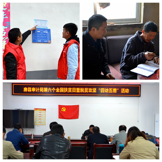 今日房县网讯 通讯员 彭豪 杨晗 报道:近日,湖北省房县审计局深入“四双”帮扶村——红塔镇桂坪村、野人谷镇鱼鳃口村,开展第六个全国扶贫日暨脱贫攻坚“四访五看”活动。包户干部和新时代文明志愿者深入农户宣讲党的扶贫政策,宣传乡村振兴和该县“四好创建”知识,了解“两不愁三保障”政策享受情况,询问“三留守”家庭生产生活情况,倾听群众心声,为民解决难题,巩固帮扶成效。图为活动现场。