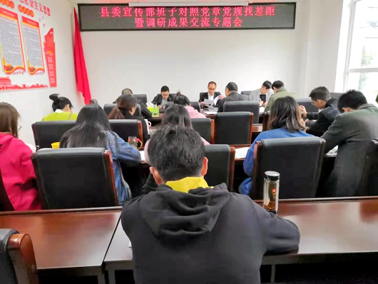 今日房县网讯 通讯员 王超亿 报道:按照中央和省、市、县党委主题教育工作部署要求,11月5日下午,县委宣传部在部会议室召开全体干部会,领导班子依次交流对照党章党规找差距和调研成果。宣传部常务副部长赵礼江主持专题会,并与领导班子成员在会上逐一作了发言。“不忘初心、牢记使命”主题教育第十三巡回指导组全体成员到会指导。
