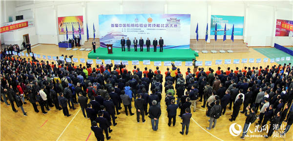 人民网武汉11月20日电 11月19日,首届中国船舶检验业务技能比武大赛在武汉开幕。来自全国各地船舶检验机构、中国船级社等56支代表队和来自国外的美国船级社、法国船级社等12家世界著名船级社,共计300余名注册验船师参加比赛。