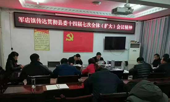 今日房县网讯 :12月17日晚间,军店镇召开专题会议,传达贯彻县委十四届七次全体(扩大)会议精神,集中学习县委书记蔡贤忠同志所作的《不忘初心 牢记使命 坚决打赢三大攻坚战 奋力推动高质量发展》重要讲话,对全镇贯彻落实会议精神、谋划2020年工作思路进行安排部署。