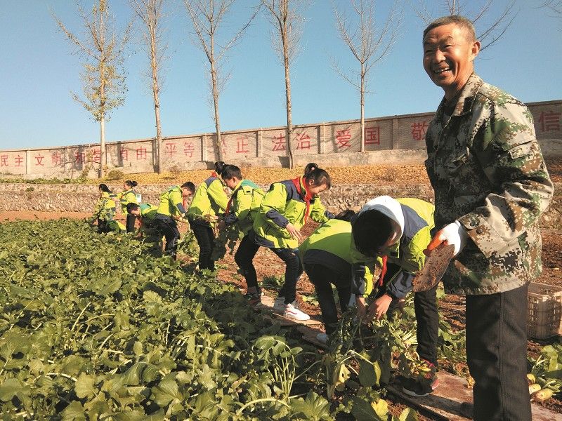 “孩子们,看好了,萝卜是这样拔的,还要学会剔萝卜上的泥,一会儿送到食堂,中午就可以吃到我们自己种的萝卜了……”初冬时节,在房县青峰镇青峰小学综合实践活动基地,61岁的张全贤老师正带着一群六年级学生拔萝卜。在劳动中,张全贤身手矫健,一点看不出他是一位60多岁的老人。
