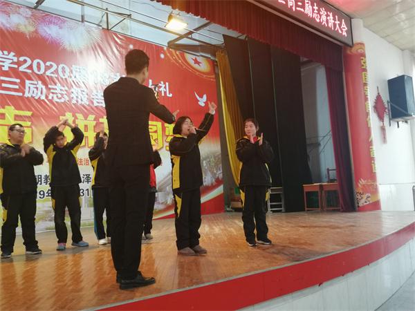 大会特邀善朝教育集团赵泽老师为同学们作励志报告。他用高昂的情绪、动听的话语以及富有启迪的故事点燃了同学们追逐青春梦想的激情,激励同学们明确人生目标,勇敢挑战自我、坚持不懈奋斗、做最好的自己!同学们也落落大方,踊跃登台,大声喊出自己的梦想,誓言为中华之崛起而读书,为梦想之实现而奋斗。