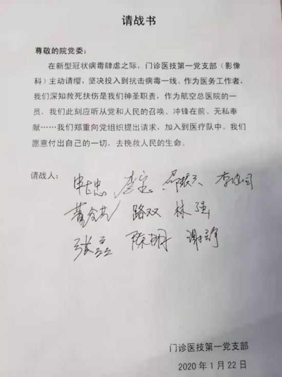 在获悉疫情的第一时间,北京航空总医院许多家在外地的党员干部主动退票,留岗值守。在医院感染疾病科人员紧张情况下,各科室、党支部积极响应医院号召,党员干部带头,快速组成了两个医护人员梯队,参加疫情防控应急增援。