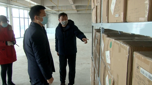 纪道清在疫情防控医用物质仓库查看物资采购储备情况