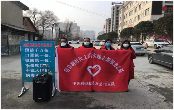 房县移动公司副总经理柏玉林带领志愿者到包保责任区中西关社区开展疫情防控宣传及行人劝导工作。
