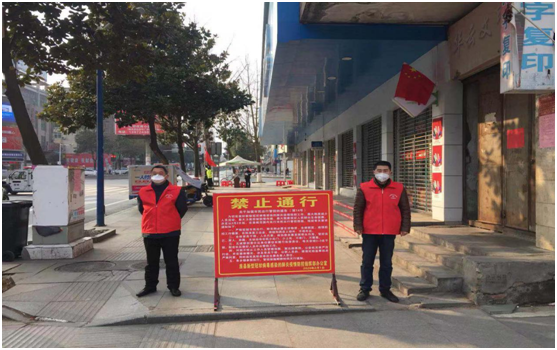 随着疫情的发展,封路、封城迫在眉睫,随之而来的少部分群众不理解、生活的不方便、路口的把守、防控物资的紧缺成为一大难题。关键时刻广大志愿者大军挺身而出,他们有的走上街头,采用高音喇叭、张贴宣传标语等多种方式向城镇居民开展疫情防控宣传,有的义务守候在路口,劝返过往行人,还有的上门为居民群众义务检测体温,为防控筹集口罩、消毒用品等物资。