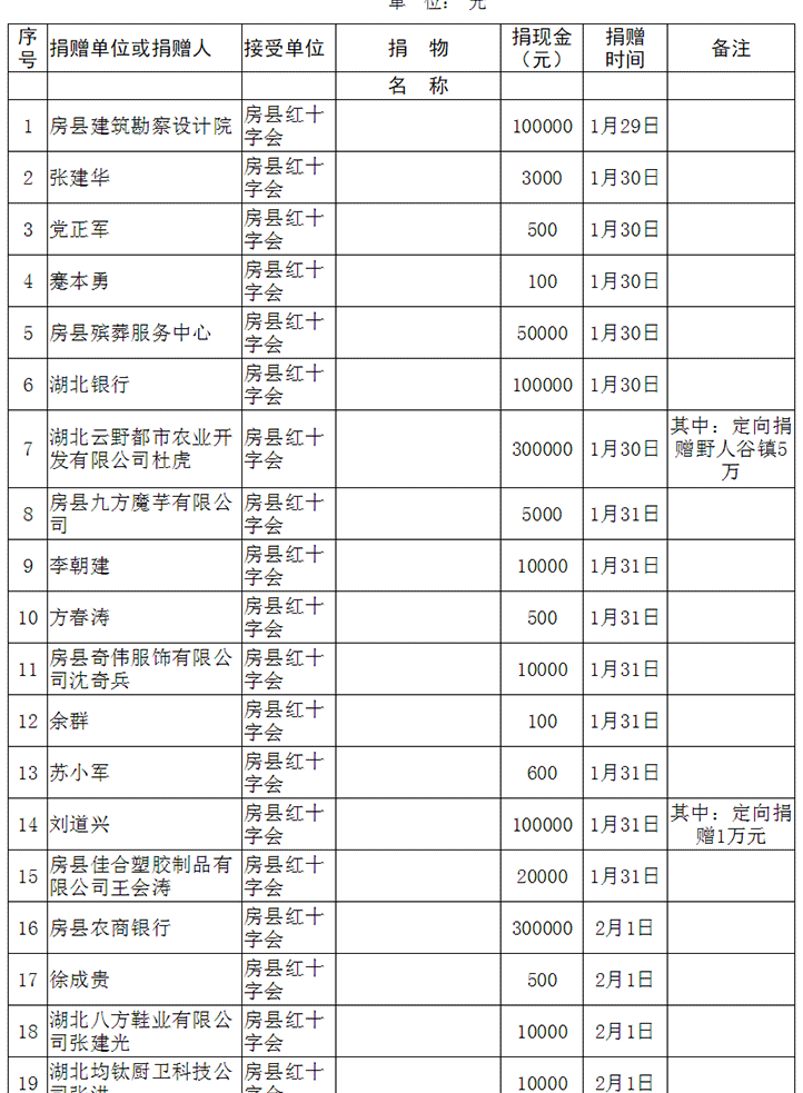 房县接受社会各界新型冠状病毒肺炎疫情捐赠情况公示-今日房县网-- 房县门户