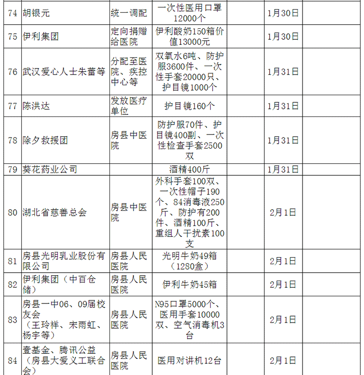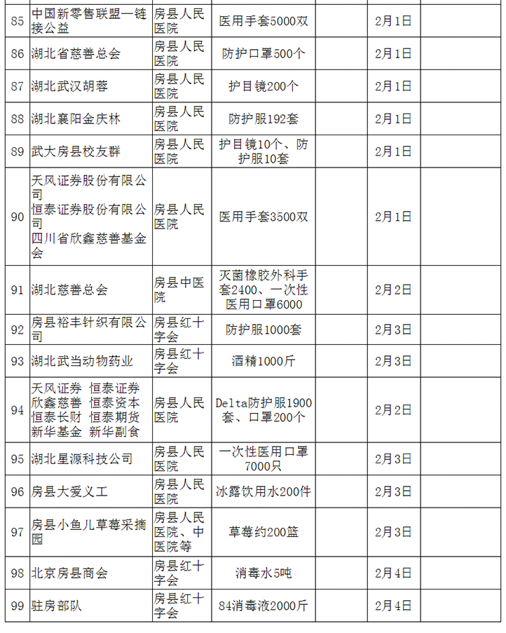 房县接受社会各界新型冠状病毒肺炎疫情捐赠情况公示