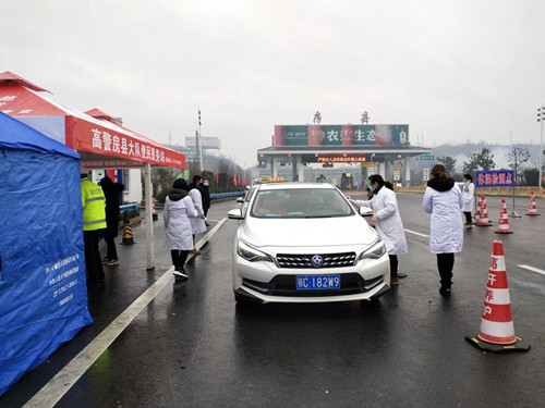 郭春华奔波在十房高速路口为来往人员测体温