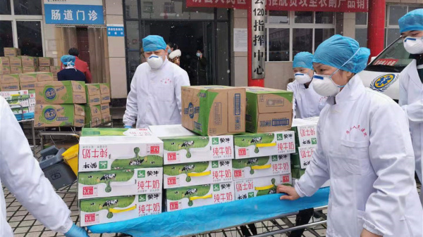 县医院、中医院收到物资后,立即将这批牛奶发放至奋战在抗击疫情一线的广大医务人员手中,为一线工作者提供营养支持,为打赢这场“战疫”提供坚实后勤保障。