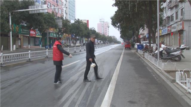 志愿者杜虎介绍说,“从8:30到现在,主要是配合老城社区在十字街口进行劝导。从8点半到现在,我们没发现国家工作人员在街上流窜,(过往人员)主要是医务人员和警察。”