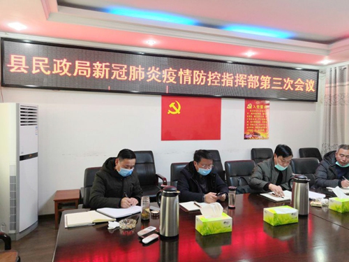 “即日起,全体干部进入战时状态,局党组成员要主动作为、靠前指挥、分工负责,以压责任、兜底线、保根本、提效率为主线,保障人民群众特别是民政服务对象生命安全和身体健康,率领全县民政系统干部坚决打赢疫情防控阻击战!”疫情就是命令,防控就是责任。自1月21日起,民政局党组多次召开专题会议,贯彻落实习近平总书记指示精神和省、市、县各级工作要求,科学研判形势,全面部署民政领域疫情防控工作,重点做好民政福利机构、殡葬服务疫情防控、人员排查管控及单位值班值守等工作。连日来,为确保民政系统干部和服务对象安全,局党组协调各方资源,为局属各单位和福利机构派送口罩2000个、消毒液100瓶、酒精1200公斤、防护服13套、手持电子测温抢3支、护目镜2个,全面保障福利机构正常运转。在这场没有硝烟的战场上,民政局党组成员们主动放弃了春节假期,每天坚守在岗位,坚守在一线,身先士卒、不眠不休,哪里有需要,就奔赴哪里,哪里有短板,就补齐哪里,用一点一滴诠释着民政人的使命与担当。