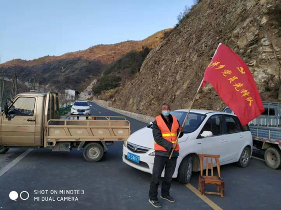 今日房县网讯 通讯员 郑舒鑫 报道:许诺君2月10日大清早,一位72岁的老党员扛着“党员先锋队”旗子,来到房县姚坪乡屈家坡村新冠肺炎防控卡点,开始一天的执勤。