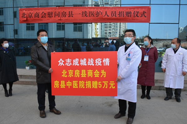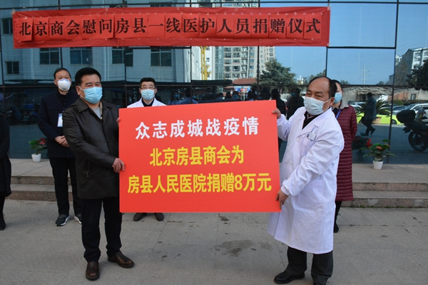 今日房县网讯 记者 陈锐 通讯员 陈士军 报道: 为表达对奋斗在一线的医务人员的感谢,支持家乡疫情防控工作。2月19日,北京房县商会向我县三家医院捐赠现金15万元慰问一线医务人员。县委常委、宣传部长董诠闻,副县长王玲出席捐赠仪式。