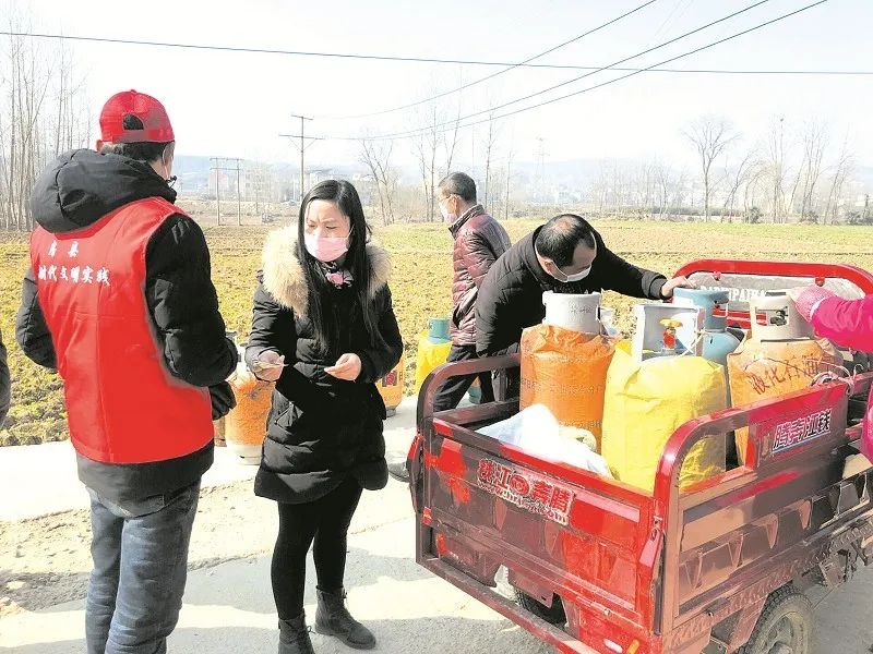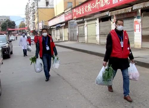 ”2月19日上午,城关镇老城社区网格员张文和他的同事们手提青菜、面条、卫生纸等生活物资,按照“订单”上的地址送到社区居民家门口,让群众安心“宅”在家中。