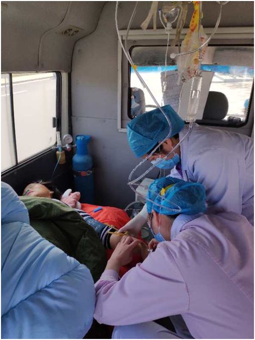 2月17日早上7时40分,县妇幼保健院接到九道乡卫生院的急救电话,称该院一名产妇胎膜早破,血压下降,急需转院救治。医护人员准备好抢救物品,立即启程前往九道乡。