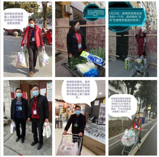 疫情就是命令,责任就是担当。在这场没有硝烟的疫情阻击“战场”上没有男女老少病弱之分,供销人牢记服务宗旨,充分发扬吃苦耐劳的“扁担.背蒌”精神,克服人员少,年龄偏高病号多等储多困难,舍小我克大难,一声号令全员上阵,分赴在联防联控多个责任区和驻点帮扶村,以实际行动践行供销人初心使命,严格按照县委防控指挥部统一部署,服从社区、驻村乡镇战时安排,遵守战时纪律,坚持值勤值守,每日为小区消毒消杀,不畏病毒感染风险孤单奔赴在商超街巷,为防控区内居民***生活物资不辞劳苦送上门,驻村帮扶工作队员克服生活困难,背着大碗面,冒着风雪,碾转奔赴上龛黄龙村开展驻村联防联控,严守把控每一个责任区内居民生命健康安全“关口”。