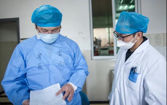在隔离病区很多确诊患者身心备受煎熬,情绪容易崩溃,雷主任时常安慰他们,给他们加油鼓劲。有老两口进来后,情绪低落,过几天看到女儿也进来了,一家三口抱头痛哭,十分无助。雷雨得知情况后,反复耐心地安慰他们,告诉他们病情不严重,派过来的医生都是经验丰富的专家,病肯定能治好。经过多次开导,病人有了信心,情绪也稳定下来。
