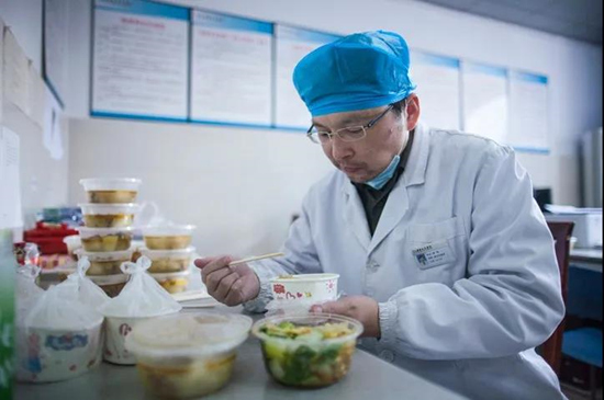 “心里虽然很想念家人,但工作一刻也不能松懈,只能抽空跟他们通个电话。雷雨从1月23日开始没睡过一个完整的觉,最忙的时候每天只睡2到3个小时。每天要完成查房、病情讨论、现场会诊、远程会诊、医护培训、人员调度、报表填写等很多工作,每天在三个病区的各个地方奔走,一刻也不得闲。办公室成了他的家,饿了就在办公室吃一口方便面,困了就在办公室折叠床上躺一会。”