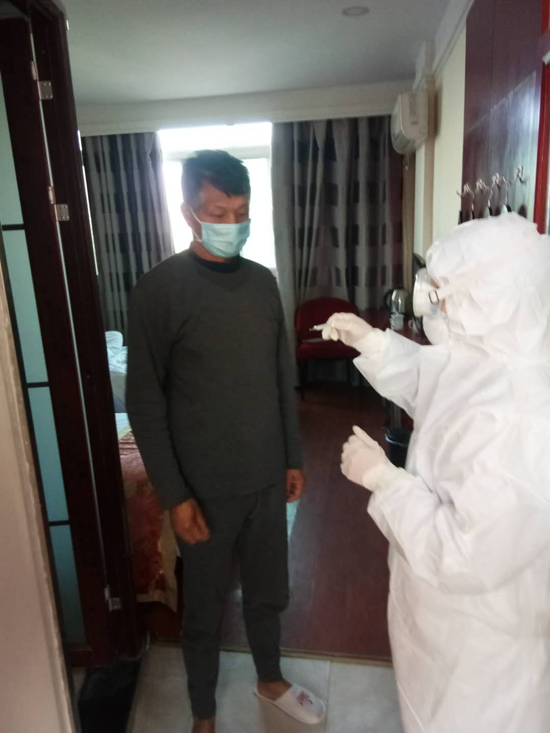 密切接触者隔离点,是为确诊和疑似病例的密切接触人员提供专门的集中隔离场所,要实施封闭式生活管理,这层空荡荡的宾馆一道防盗门里面住着隔离人员,外面就是我们的活动区域,突然感觉有点不知所措,千头万绪萦绕眼前,我告诉自己不要急,什么事一件一件来,每个被送来的隔离人员我们都做好入住登记,同时我们要做好这些人员的生活管理和身体情况记录及病情筛查、基础疾病的监测,每天为他们发口罩、测量体温,送一日三餐、发中药、房间消毒、分发生活用品及一些临时性的工作,哪个房间电视打不开、哪个房间烧水壶坏了、哪个人高血压药没有了,我们都要第一时间解决好,疫情期间酒店没有工作人员,隔离人员的生活垃圾及宾馆几层楼的卫生都是我们自己收拾。