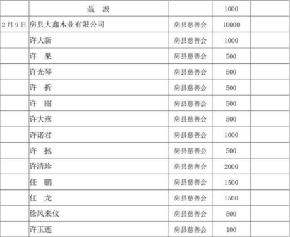 今日房县网讯 通讯员 程正威 报道:疫情防控,人人有责。前日,房县交通运输局退休老党员许大新同志“三步走”,以实际行动,积极为我县奋斗在疫情防控工作一线的同志们加油助力。第一步以房县大鑫木业有限公司名义捐款10000元,第二步号召自己的兄弟姐妹共捐款10500,第三步号召自己认识的老板和交通局老同事们捐款。他的善举得到了陈林森老局长等同志的积极响应。目前经多方筹集善款20500.00元,已经打入房县民政局慈善会,用于我县疫情防控工作。