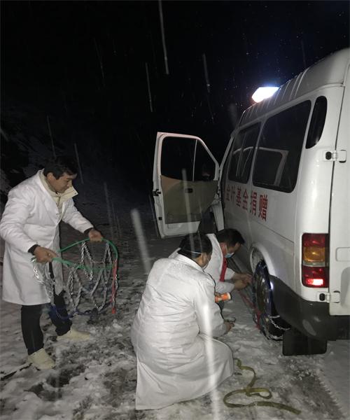 然而,高山雪太大,当行驶到海拔最高路段时即便已经上了防滑链,救护车却依然像小船在波涛汹涌的海里一样摇摇晃晃地前行。不一会,前方一辆满载救援物资的货车横在了路中间挡住了去路,看看正在痛苦挣扎即将分娩的孕妇,“大家一起动手吧!”孙希贵说完拿起铁铲在前方清理积雪,副院长陈进用自己单薄的肩膀向前推车,随行的龚艳沉着地观察孕妇的情况,谢昕欣拿着手电筒忙前跑后地照明,经过一个多小时的努力,一行人用铲子和双手硬生生的刨出了一救命路。终于在在凌晨2点多安全将孕妇转到保健院车上。负责前来接孕妇的妇幼保健院邓主任看在眼里,调侃道:“陈院长你放心,我们会帮你照顾好你媳妇的……。”陈进望着渐渐远去的尾灯,心中满是愧疚和无奈。因为他的妻子石医生在县妇幼保健院产科当医生,俩个人从腊月16日到现在已经40多天未见面了。