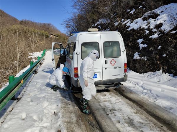 秦礼斌更了不起,他是九道卫生院返聘的救护车师傅,今年已经60多岁了,患有高血压和冠心病,原本退休的他可以在家安享晚年,但他毅选择投入到抗击疫情的战斗中,因为他知道,九道与县城路程远而是崎岖的山路,了如指掌。2月上旬连续下了两场大雪,给转运发热患者增加了风险和难度,有时需要绕道竹山县,一个单程190多公里,雪路行驶需要6个多小时。截止8日,秦师傅和年轻医生唐靖在这条冰雪的路上经常趴在雪地里上链条,拿着铲子除雪,双手磨了多个血泡,从不怨言,来回接送发热病人13人,26人次,孕产妇3人,主动带回防控物资若干,这就是他在疫情阻击战中的坚持,但是他乐在其中。
