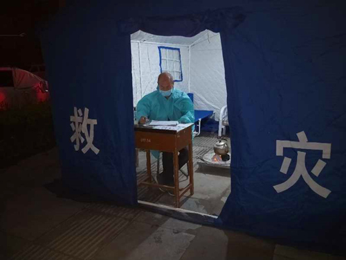 社区为家战一线。一张折叠床、一张小方桌、一把烧水壶……在卡口帐篷里摆着他的“装备”,26天来,他与同伴轮流驻守,坚持24小时值守,每天对小区进出人员、住户及家属进行体温检测,对住户进行摸底排查,积极落实日报告制度。累了,就躺在折叠床上眯一会儿;饿了,就泡方便面。